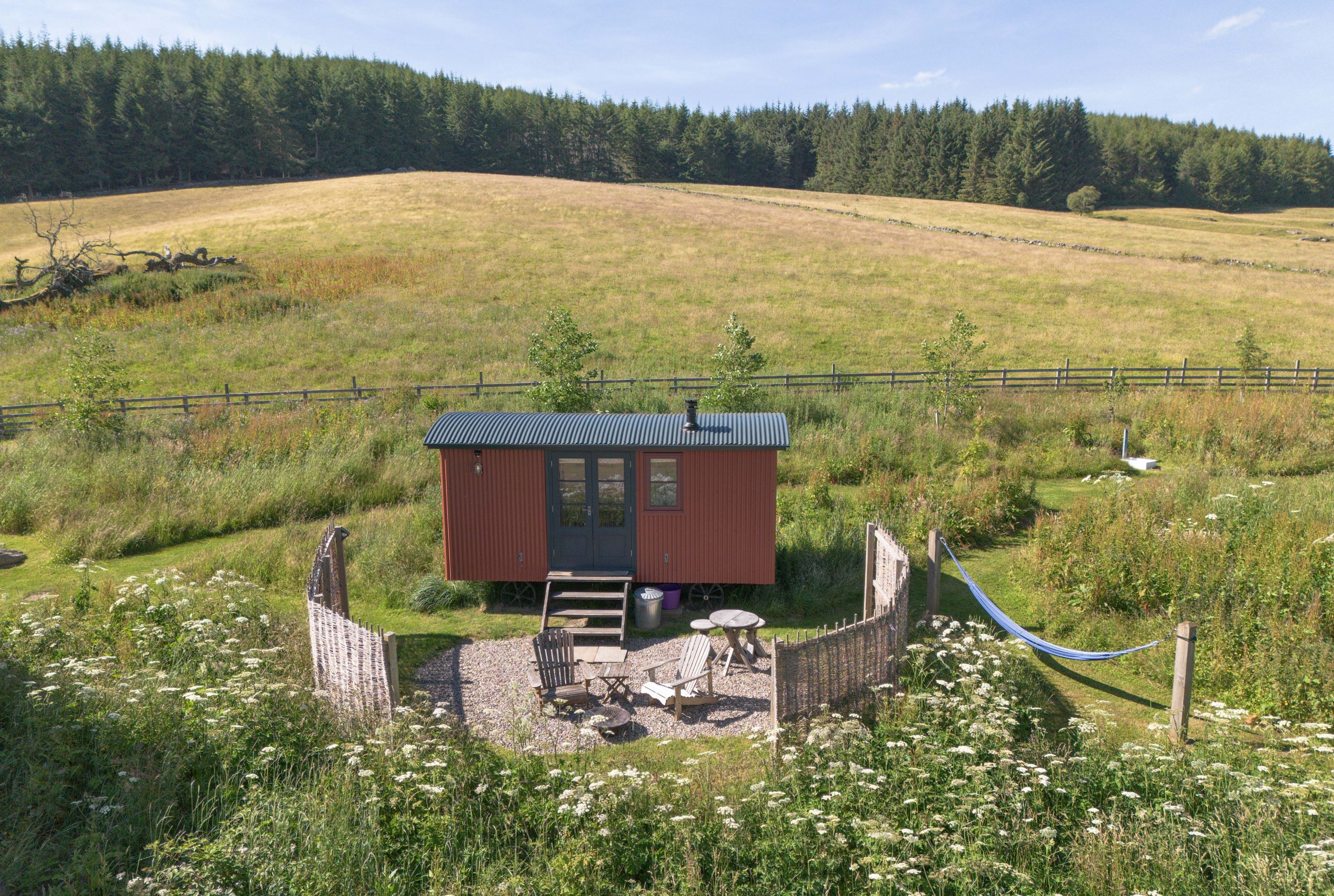 Experience a romantic escape this summer in our luxurious Shepherd Huts. Beautifully decorated with hand-stitched quilts, amazing attention to detail and the comfiest king-size bedchamber. You can enjoy the wonderful outdoor space, relax in your hammock or toast some marshmallows on your outdoor fire-pit as the sun sets. Soak up the stunning views, explore the many walks from your doorstep and enjoy a break away from the busy outside world.