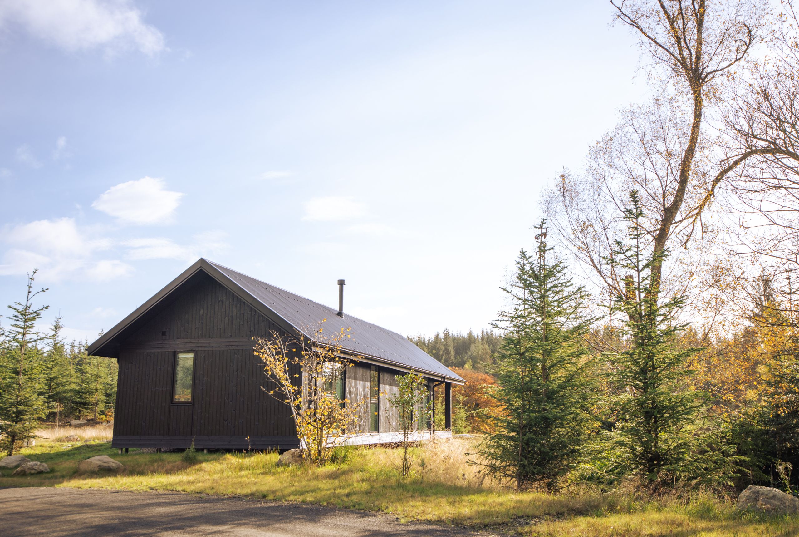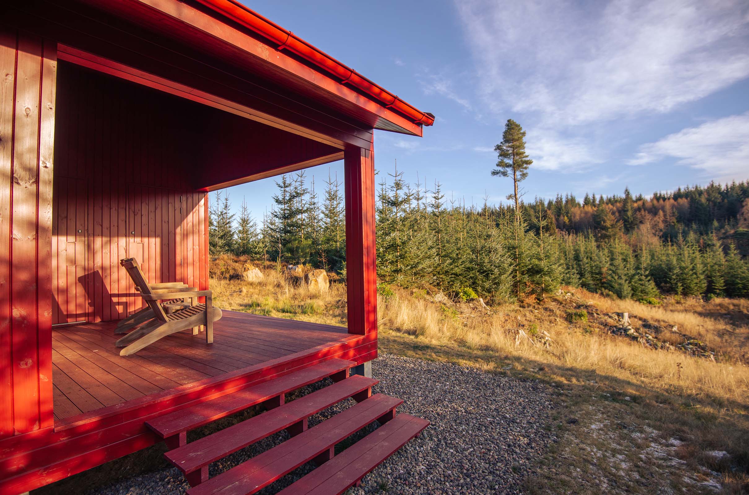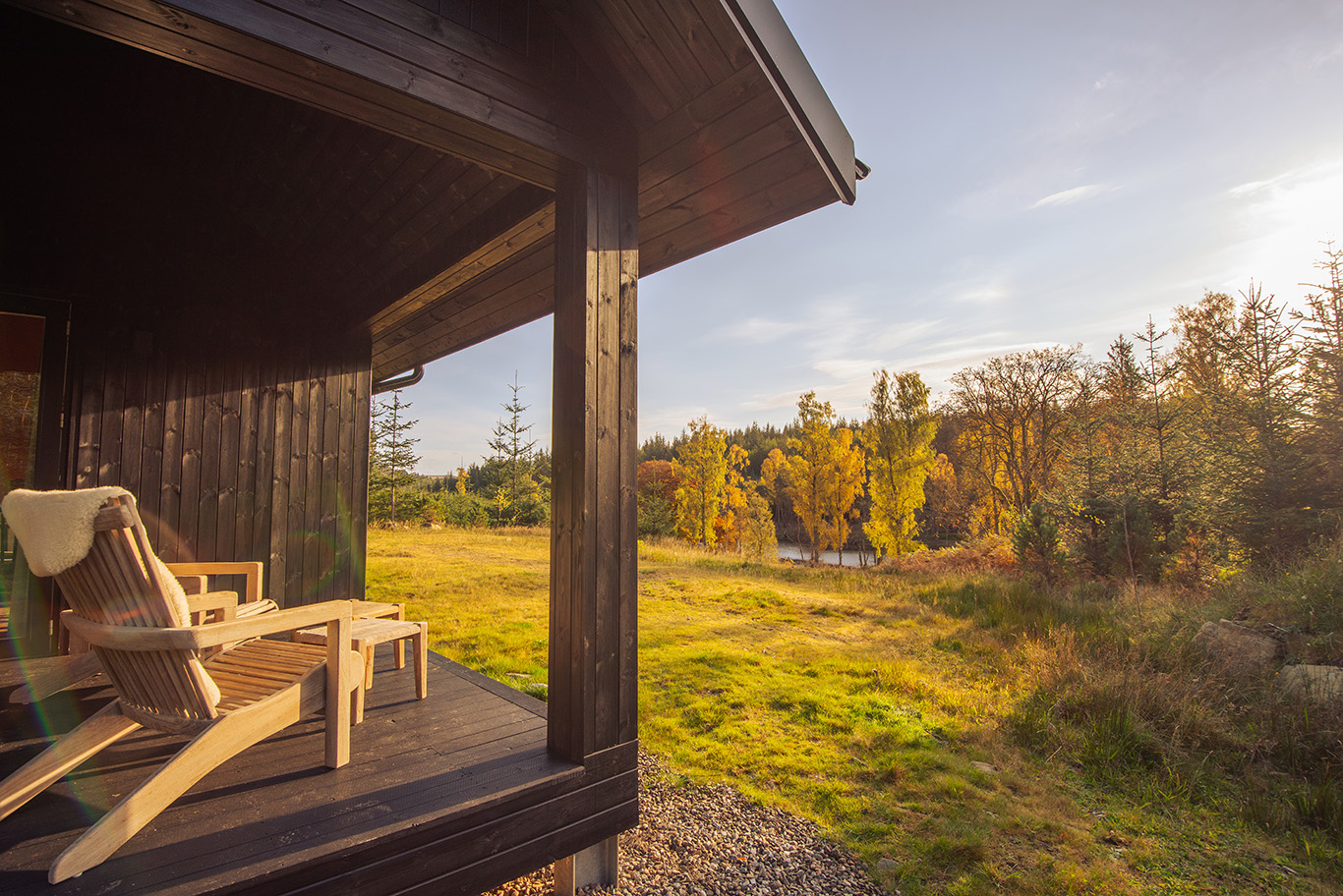 Each of the five bespoke cabins feature comfy beds, open-plan living, fully equipped kitchens, bathtubs and fluffy robes, plus sweeping views, the soothing sound of birdsong, and the scent of pine in the air. Each cabin has a private veranda with relaxing wooden armchairs complete with warm sheepskin rugs to enjoy the loch side setting.